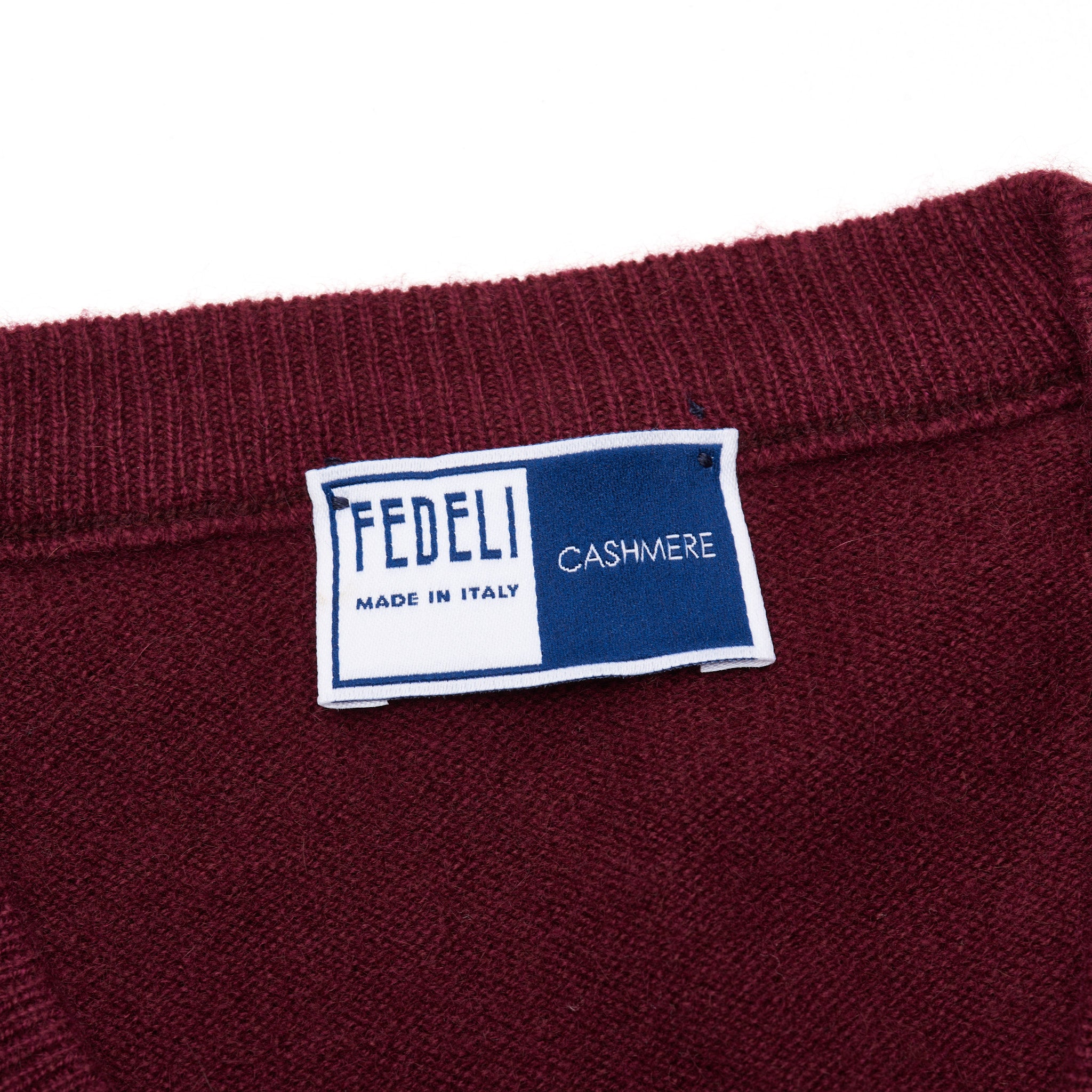 FEDELI Crimson Cashmere V-Neck Sweater EU 46 NEW US XS Slim Fit
