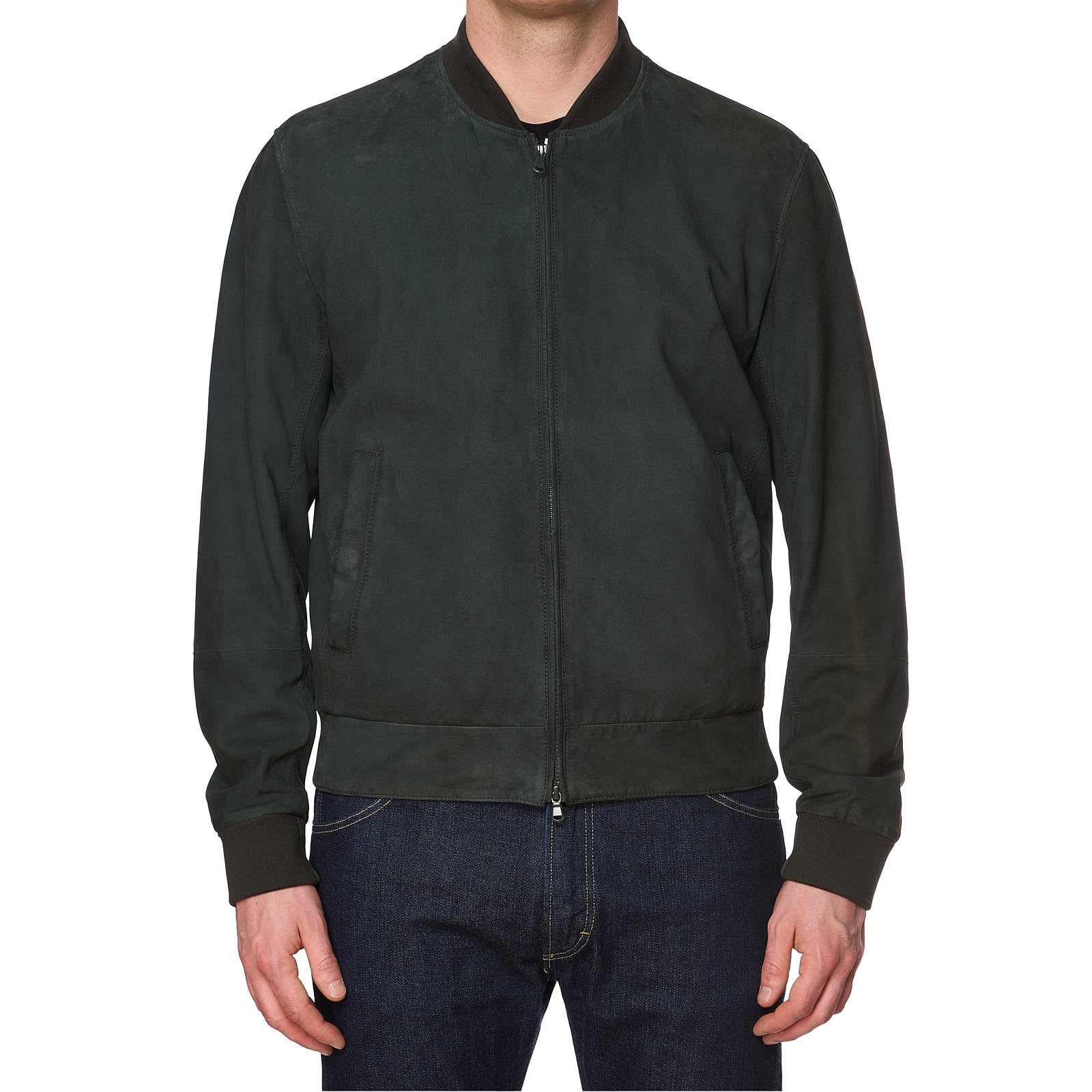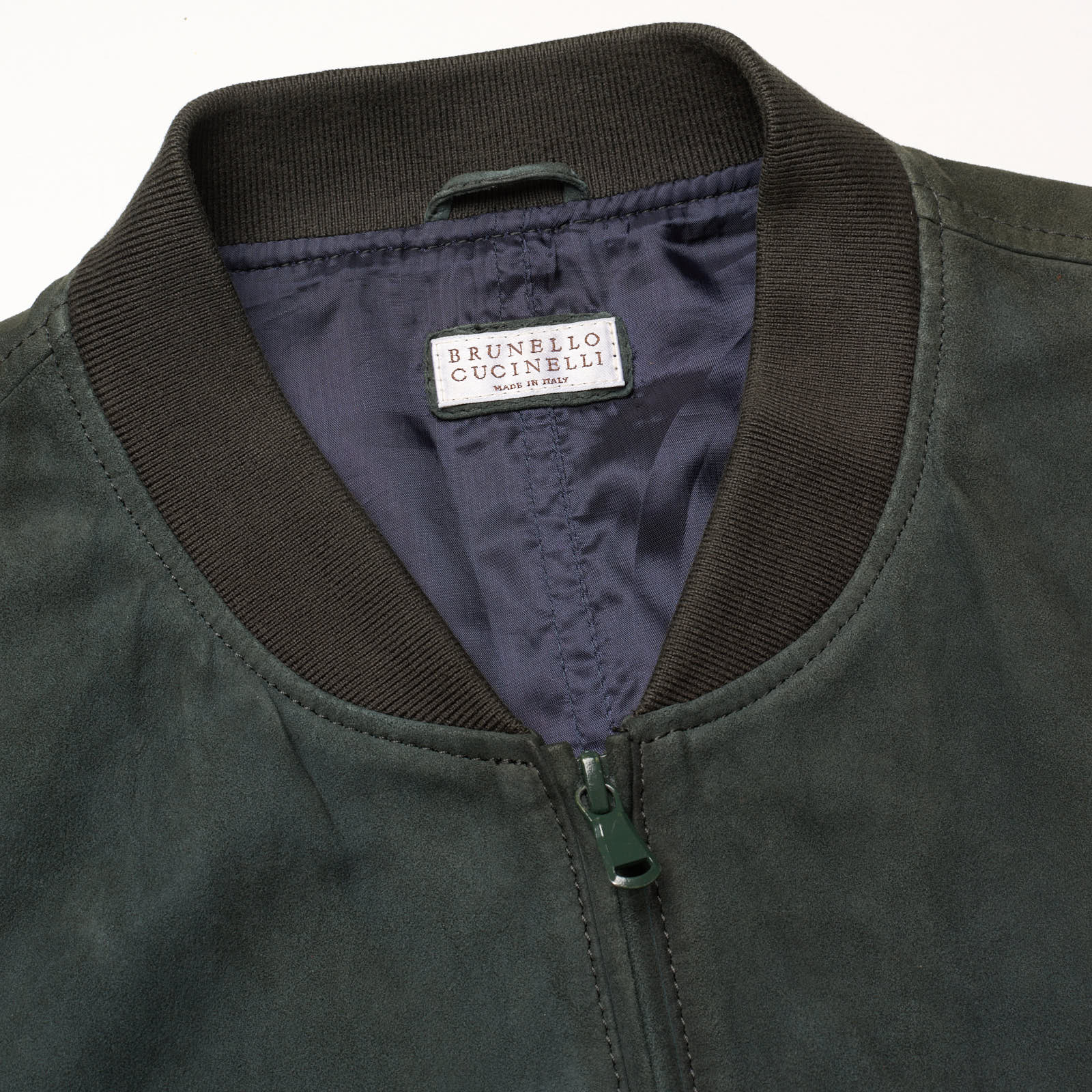 BRUNELLO CUCINELLI Green Suede Leather Bomber Jacket Size L