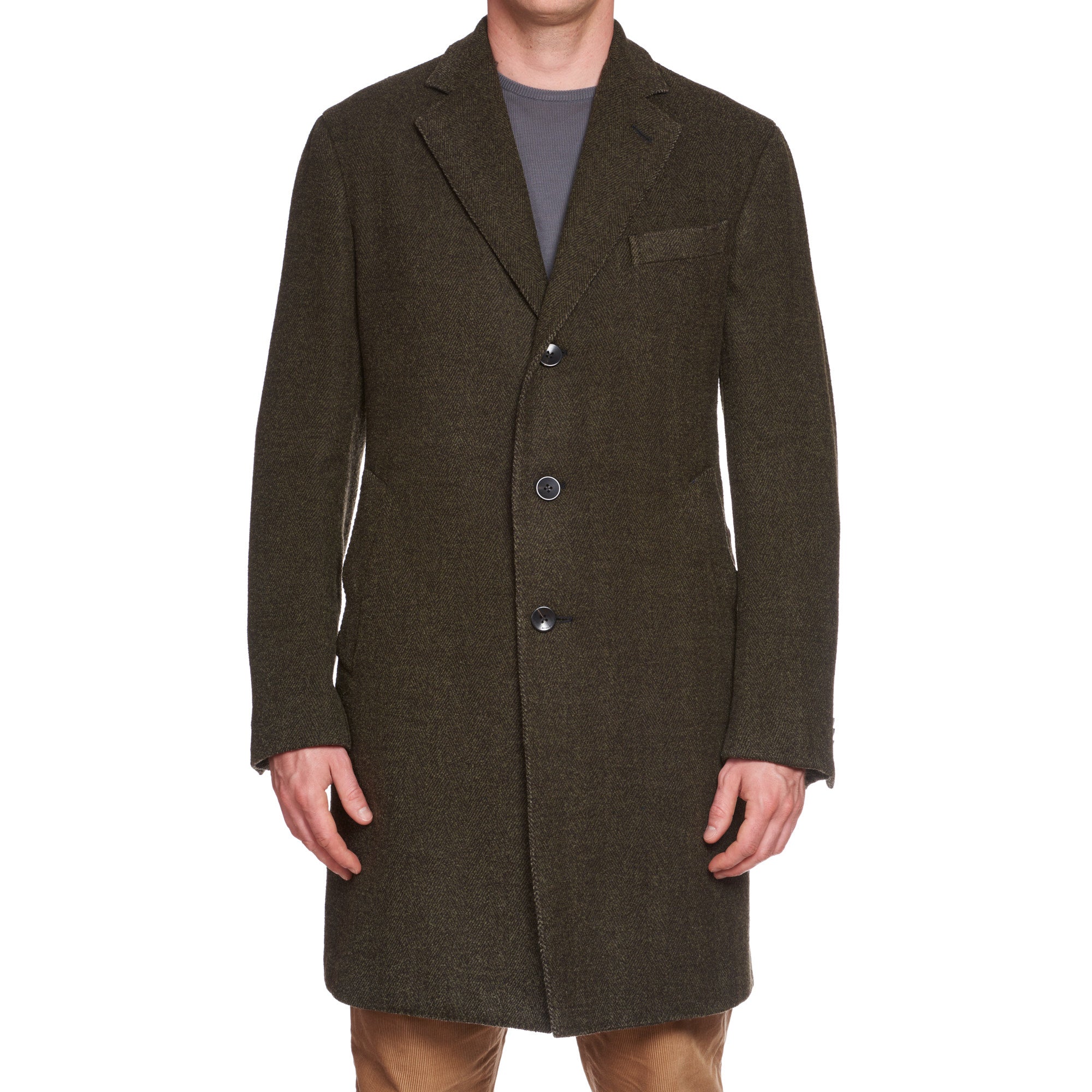 BOGLIOLI "Wear" Green Herringbone Cotton-Cashmere-Wool Unlined Pea Coat 50 NEW 40 BOGLIOLIBOGLIOLI "Wear" Green Herringbone Cotton-Cashmere-Wool Unlined Pea Coat 50 NEW 40 BOGLIOLI