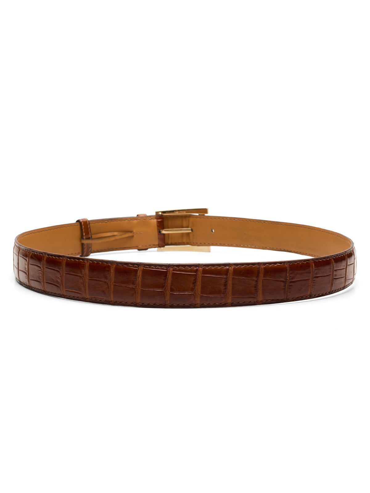 DURET Paris Cognac Crocodile Leather Silver Alpha Buckle Belt 36" 90cm