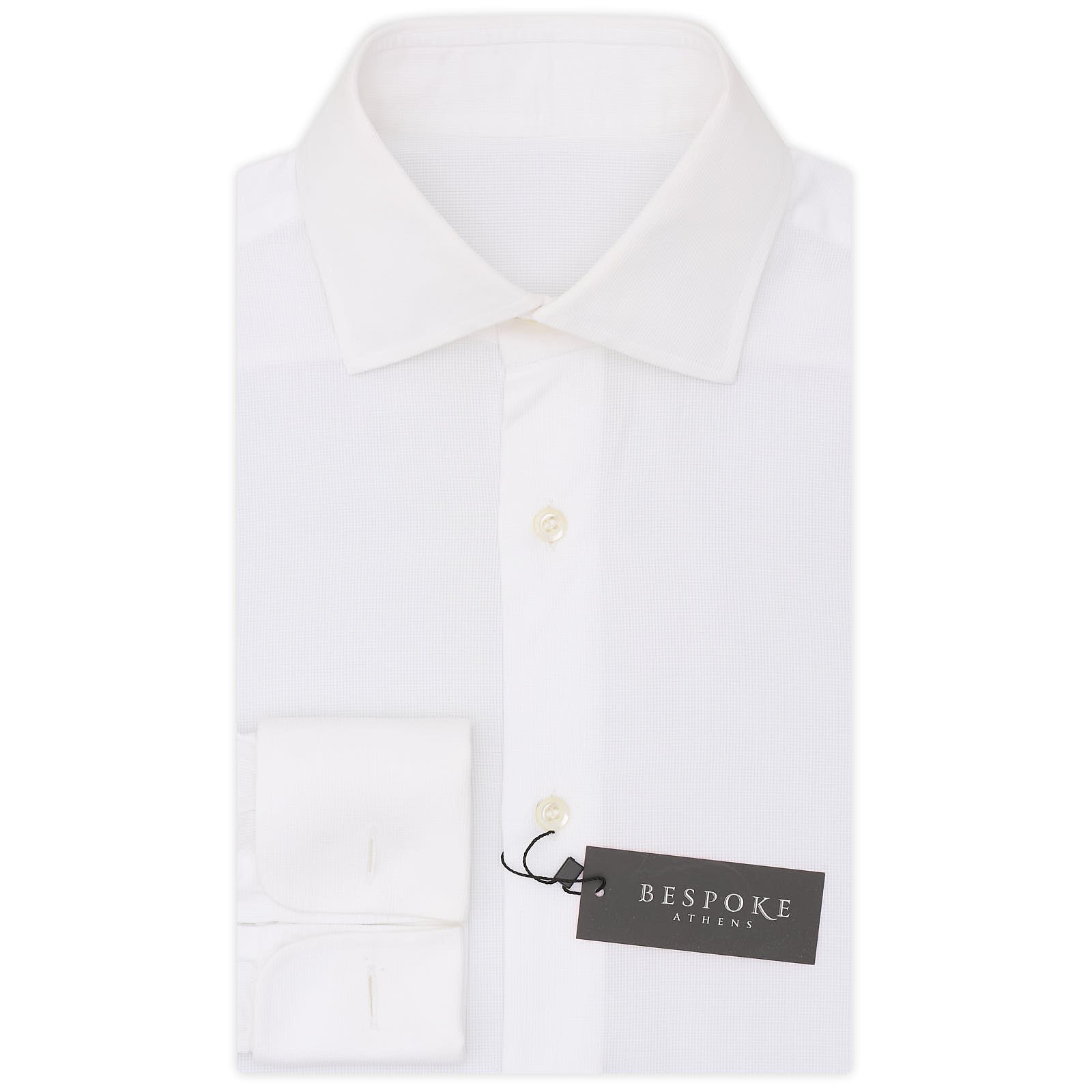 BESPOKE ATHENS Handmade White Dobby Cotton French Cuff Shirt EU 38 NEW US 15BESPOKE ATHENS Handmade White Dobby Cotton French Cuff Shirt EU 38 NEW US 15