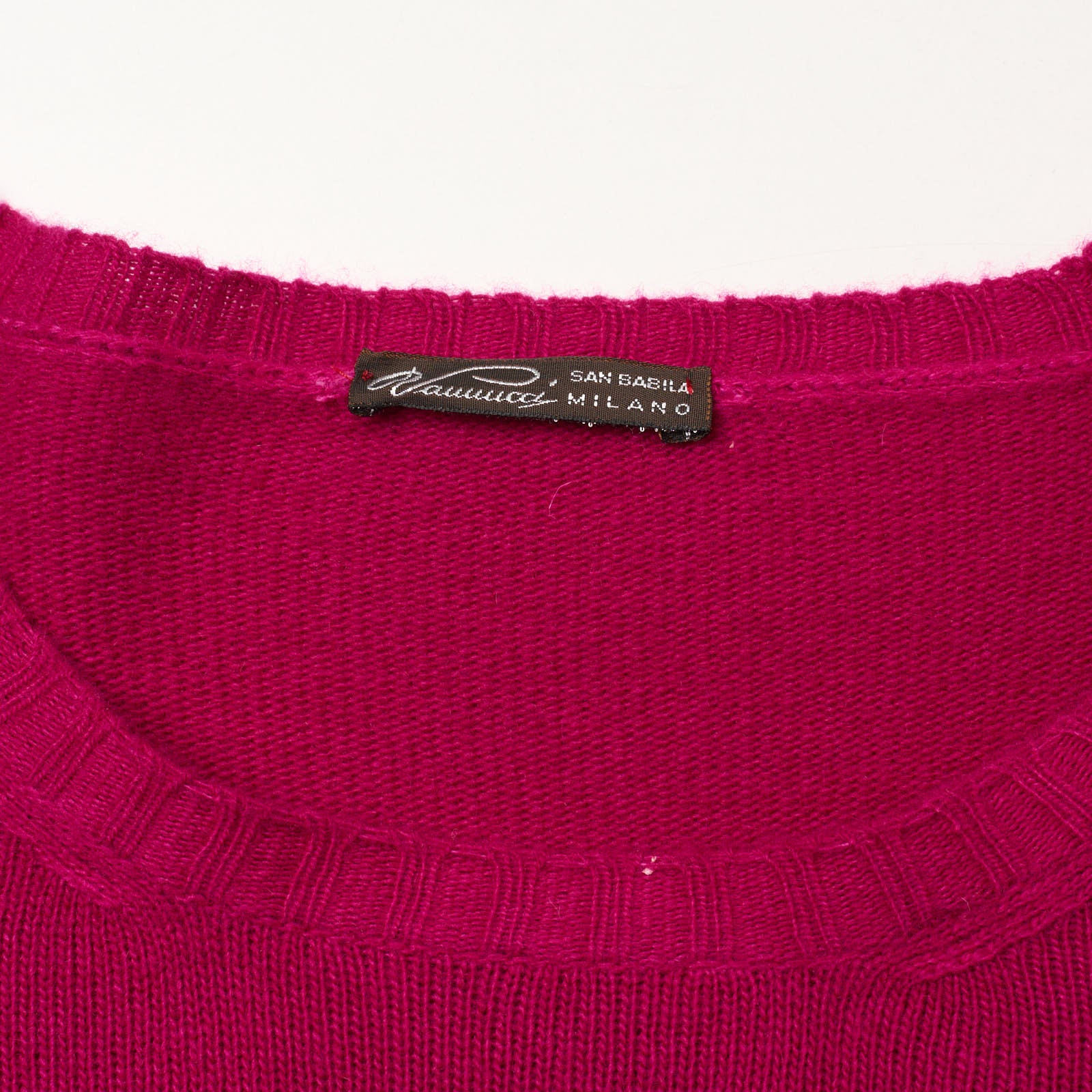 VANNUCCI Milano Magenta Wool-Cashmere Knit Crewneck Sweater EU 48 S