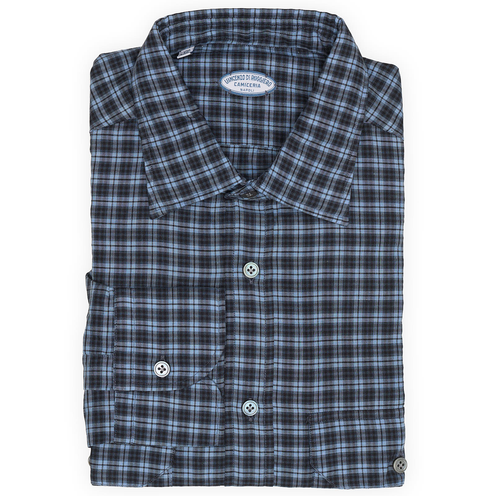 VINCENZO DI RUGGIERO Handmade Blue Plaid Cotton Shirt EU 40 NEW US 15.75