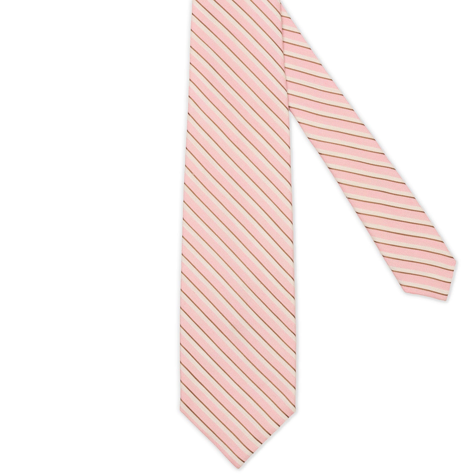 BARBA Pink Diagonal Striped Seven Fold Linen-Silk Tie NEW