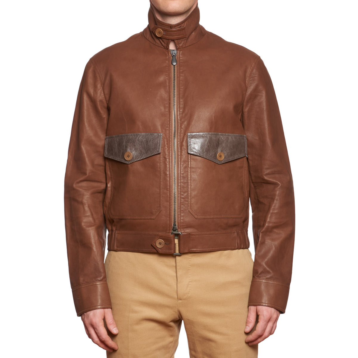 BOTTEGA VENETA Brown Leather Flight Jacket EU 50 US M