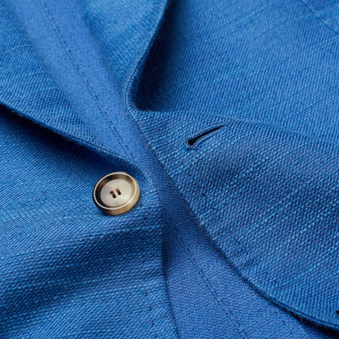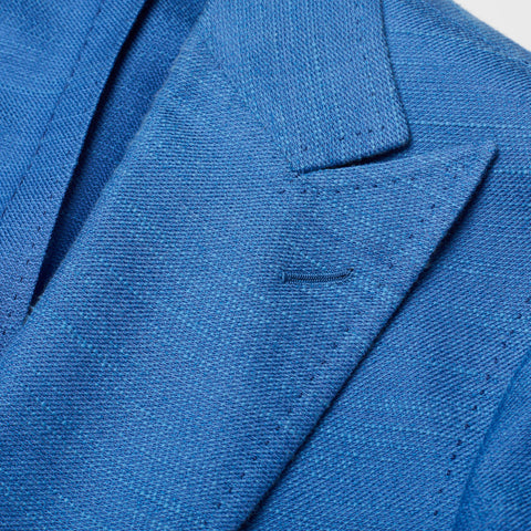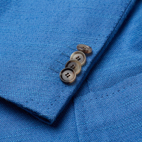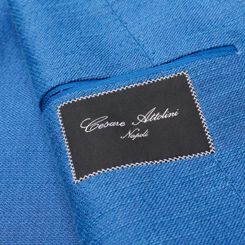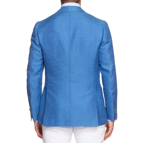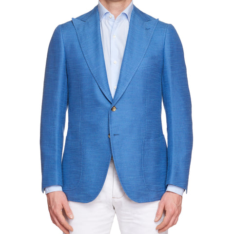 CESARE ATTOLINI Blue Cotton-Linen-Silk Unlined Peak Lapel Jacket 48 NEW US 38